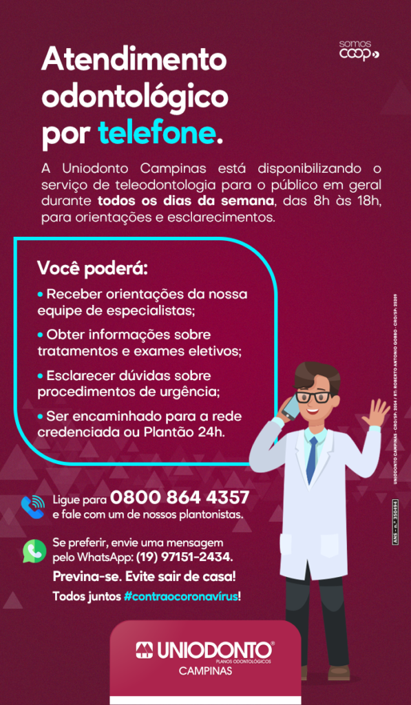 Associado assinante de plano odontológico tem atendimento odontológico por telefone.
